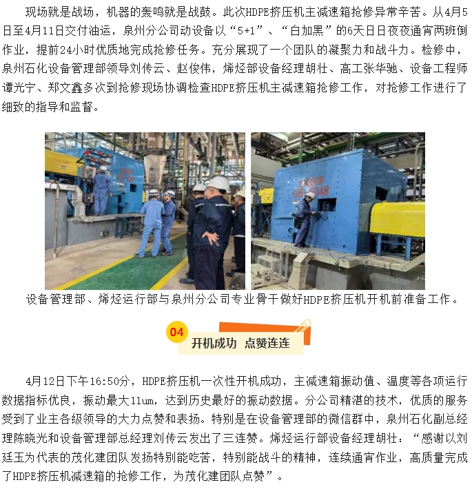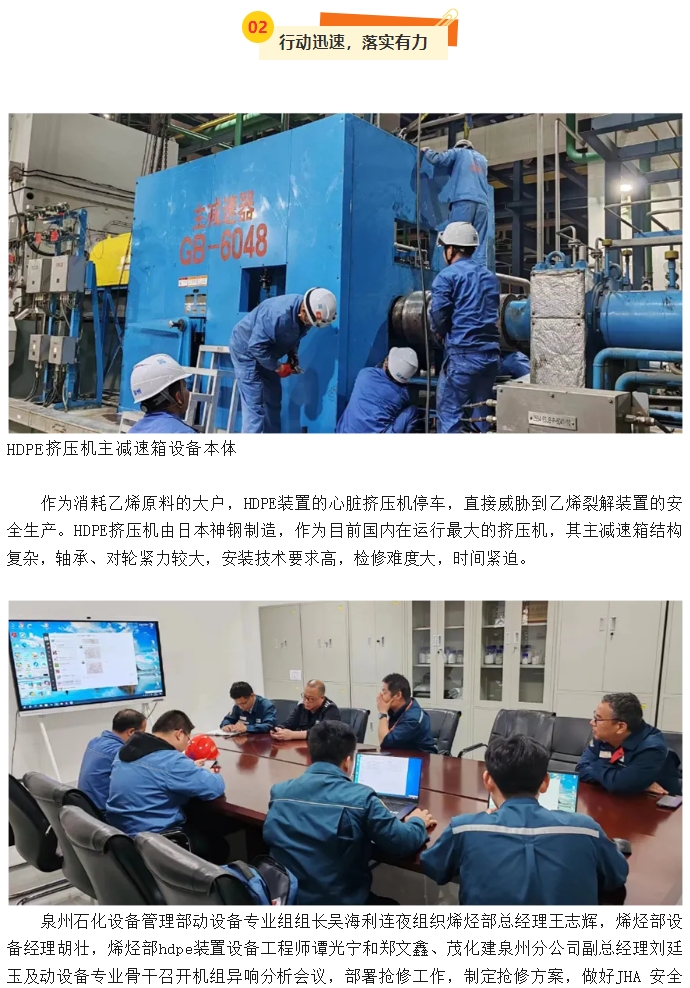 泉州分公司HDPE擠壓機(jī)主減速箱搶修紀(jì)實(shí)