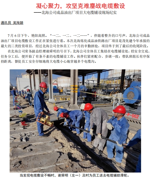 北海公司成品油出廠項目大電纜鋪設(shè)現(xiàn)場紀實