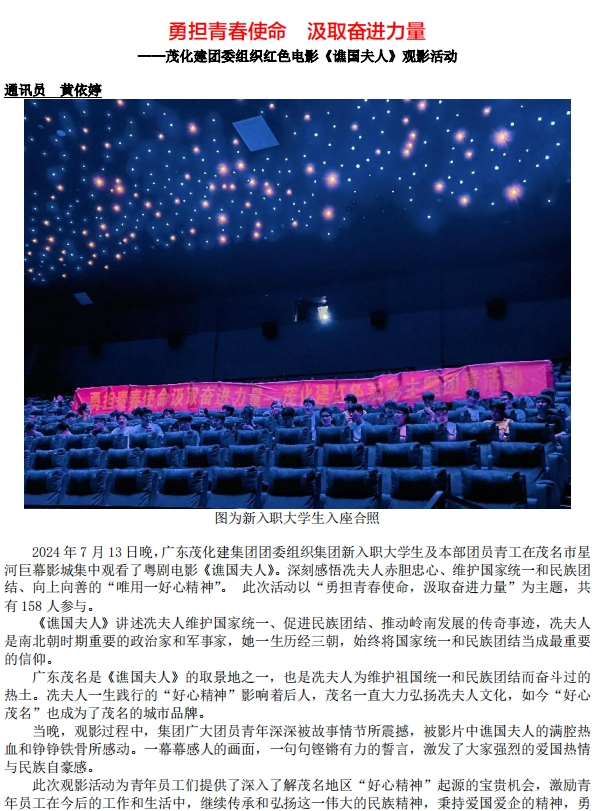 勇?lián)啻菏姑?汲取奮進力量 ——茂化建團委組織紅色電影《譙國夫人》觀影活動