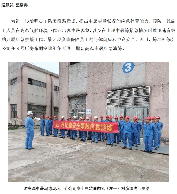 煉油機(jī)修開展防高溫中暑應(yīng)急演練