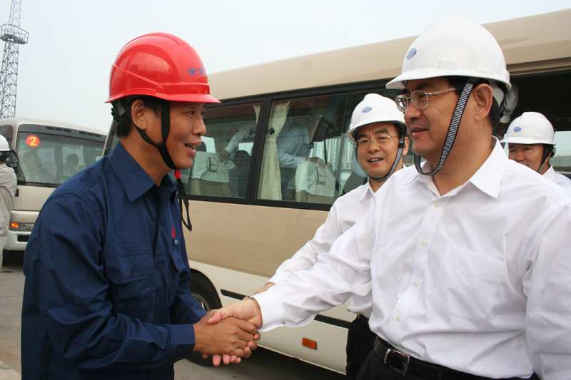 2011年11月17日,中國石化總經(jīng)理、股份公司總裁王天普、安全環(huán)保局局長王強(qiáng)、茂名石化總經(jīng)理余夕志等一行視察看了茂化建承擔(dān)施工的1000萬噸/年常減壓工程建設(shè)情況