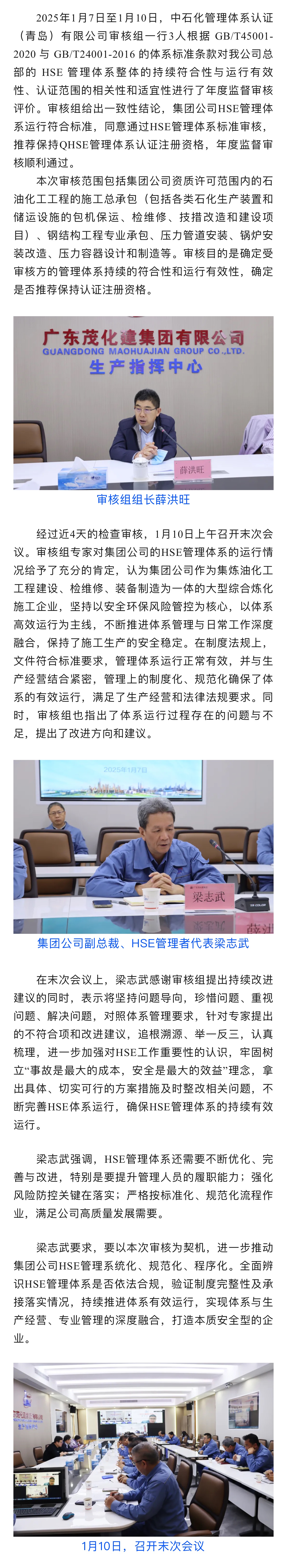 集團(tuán)公司順利通過HSE管理體系年度監(jiān)督審核