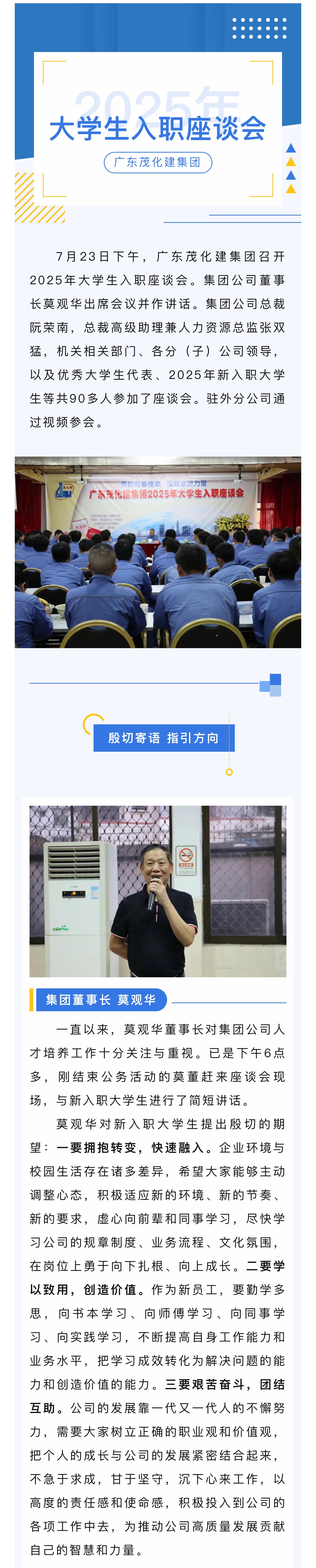 集團公司召開2025年大學生入職座談會