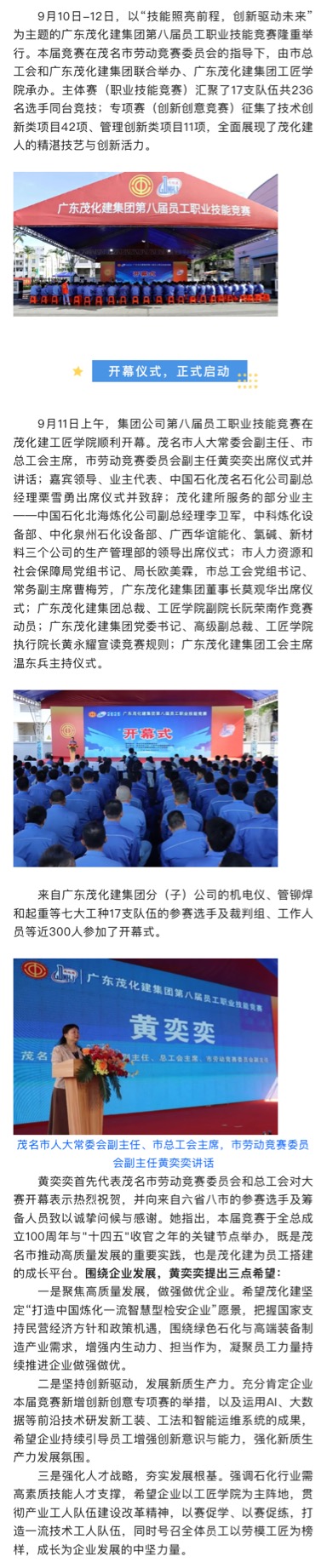 技能照亮前程,創(chuàng)新驅動未來!廣東茂化建集團第八屆員工職業(yè)技能競賽圓滿舉行