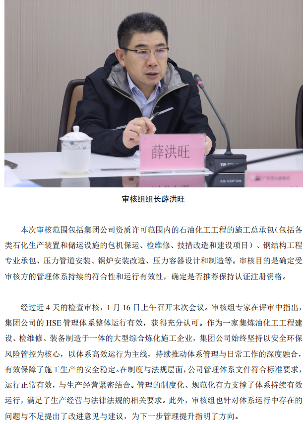 集團公司順利通過 HSE 管理體系年度監(jiān)督審核
