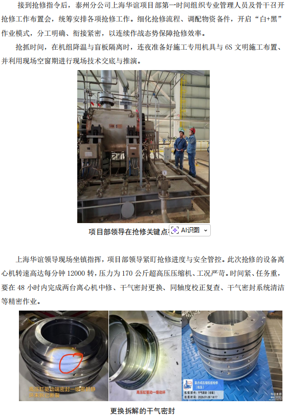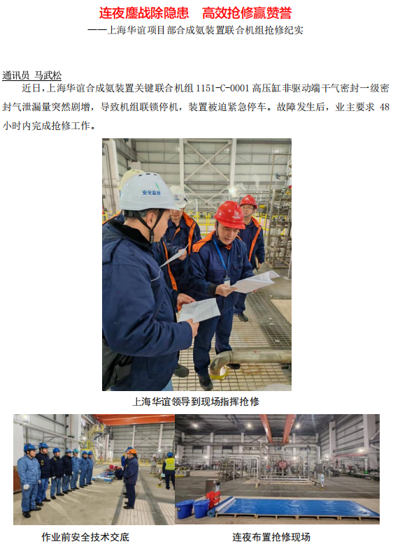 上海華誼項(xiàng)目部合成氨裝置聯(lián)合機(jī)組搶修紀(jì)實(shí)