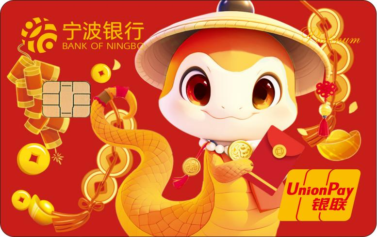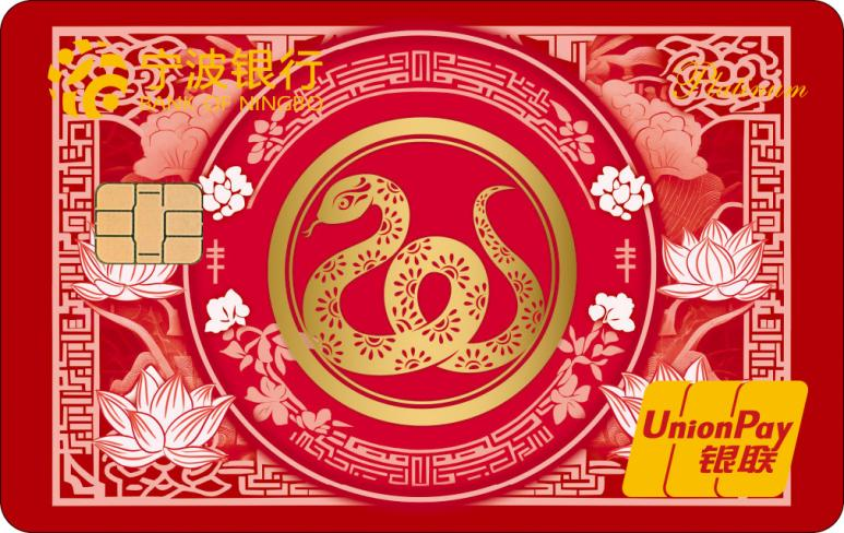 蛇年生肖白金卡是寧波銀行以“金蛇獻瑞,開卡有福”為主題在蛇年發(fā)行的白金借記卡,共推出“典雅版”和“萌趣版”兩款?!暗溲虐妗痹O(shè)計運用中國傳統(tǒng)剪紙手法設(shè)計,金色生肖蛇圖案盤繞在繁花似錦的蓮花中,透過花窗之美,盡顯活色生香的古色風(fēng)韻?!懊热ぐ妗币钥ㄍㄉ邽榛{(diào),三維立體的造型搭配春節(jié)喜慶色調(diào)以及元寶金幣的元素,象征著財富和收獲??ㄆ哂袃π?、轉(zhuǎn)賬結(jié)算、購物消費、代收代付、個人理財、電話銀行等多種功能。